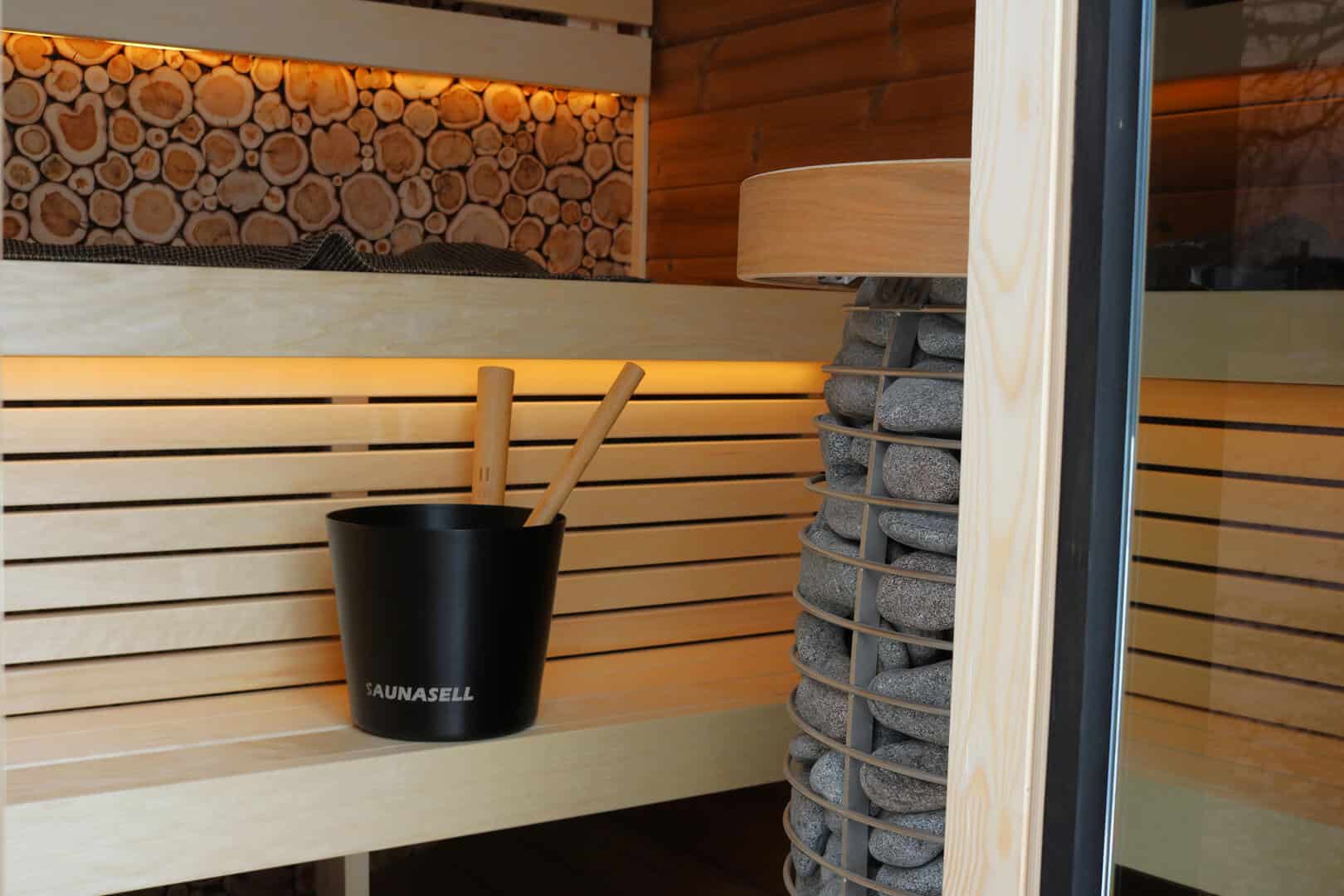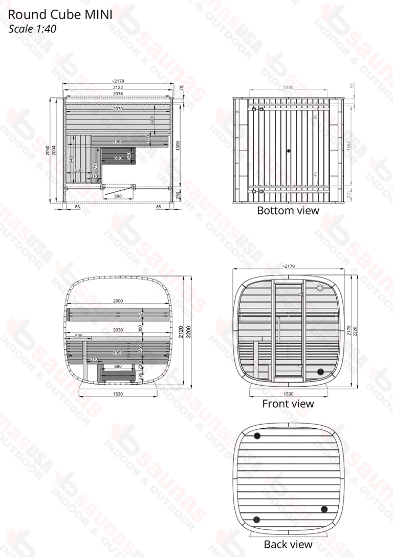 This particular Cube model includes top and bottom Alder benches, slightly shaped in an “L” configuration, as seen in the drawings tab below. You have the option to choose your preferred HUUM electric sauna heater, such as the floor-standing HIVE MINI. HUUM products are an excellent choice for any sauna because they are specifically designed to pour water on the stones, ensuring a pleasant and comfortable experience. Furthermore, you can opt for a HUUM heater with WIFI control for convenient and effortless sauna control. Simply download the HUUM app, and you can operate the sauna remotely!