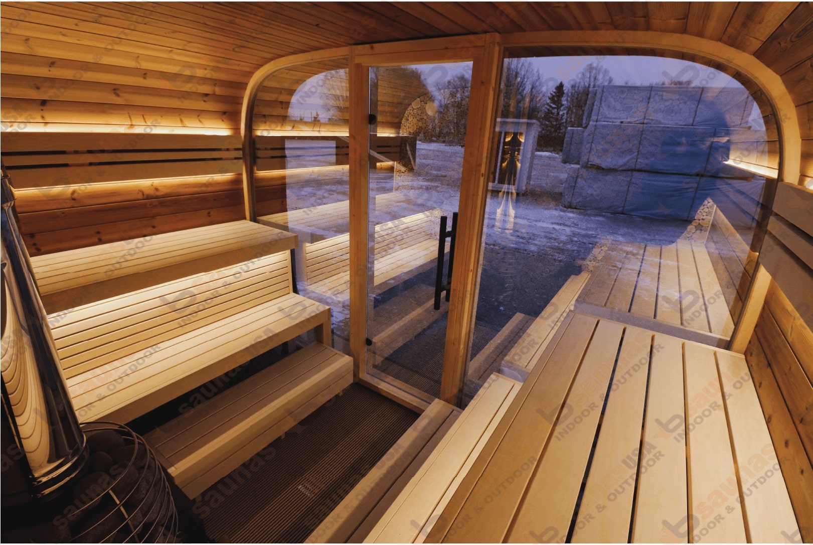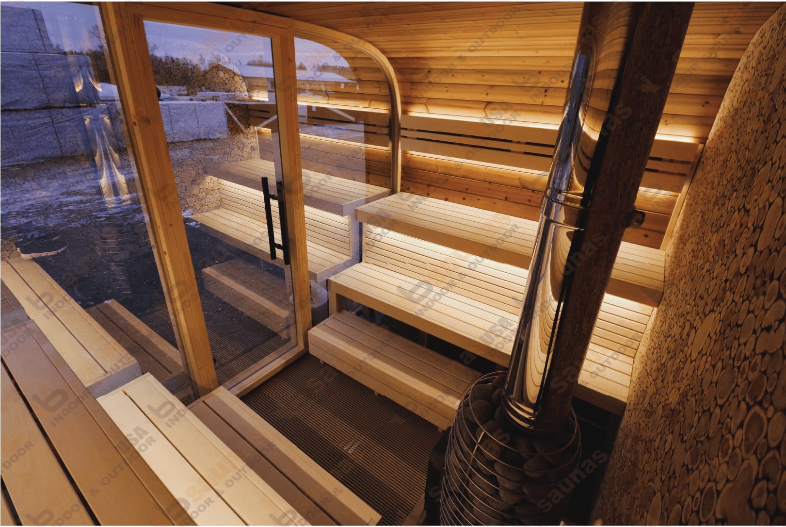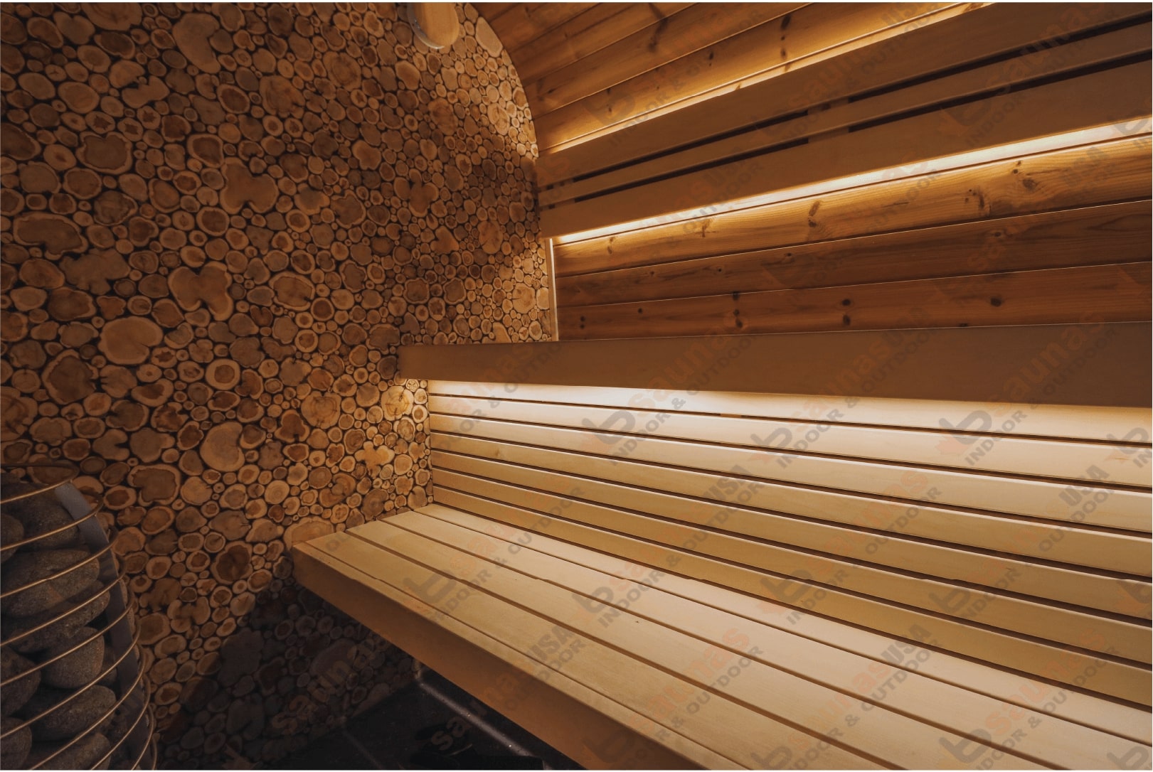 - Sauna platform with 3 steps , back bars and platform skirts made of high-quality wood material