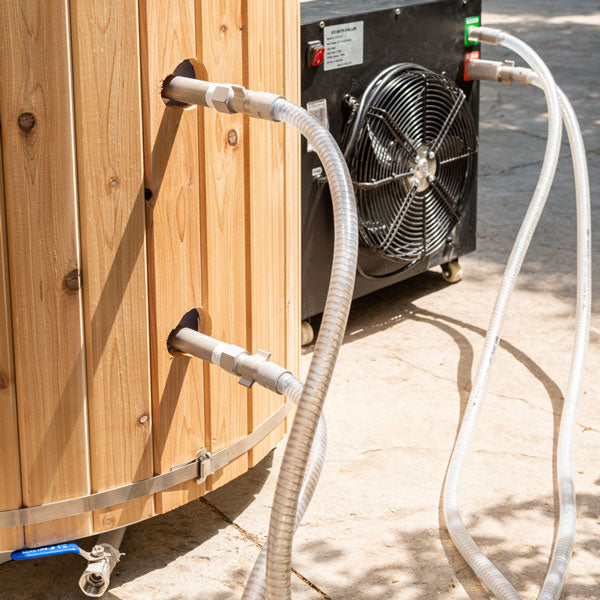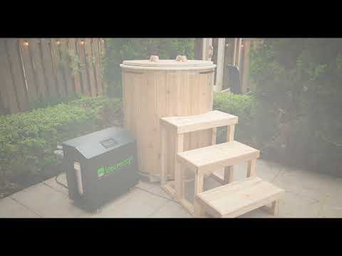 Experience cold plunge therapy with The Arctic Cold Plunge Tub that is manufactured in Canada by Leisurecraft. The white plastic shell is cut and welded with HDPE plastic and comes with a cedar skirt held in place by the stainless steel bands. Fill this tub with cold water or buy the optional chiller unit which has a built in ozone filter for ease of mind cold tub therapy. The solid cedar cover and steps are great accessories as well and the Arctic Cold Plunge Tub comes completely assembled and ready to use!