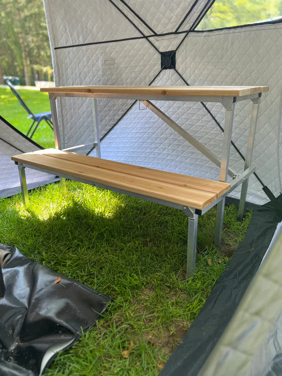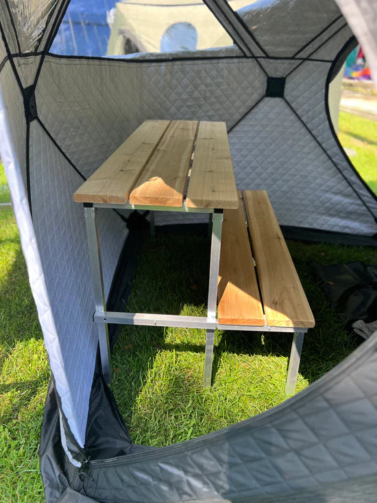 Sauna Bench (x2): Our sauna bench is crafted with durable aluminum and high-quality Western Red Cedar, known for its durability, natural beauty, and traditional sauna aroma. It raises your sitting position 30″ above the ground and lifts your feet 16″, allowing for an immersive and comfortable sauna experience.