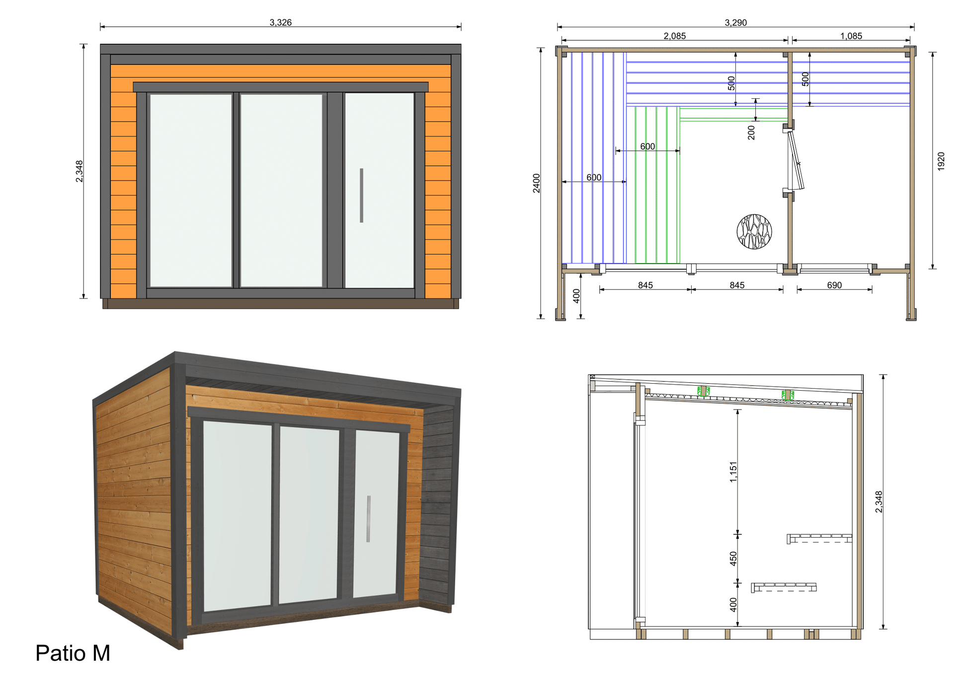 The Patio M outdoor prefab sauna is a premium-grade product designed for installation in the backyard and outdoor spaces across Canada and the USA. Unlike traditional saunas that require custom construction on-site, this sauna is prefabricated and shipped in sections/parts, making it much easier to install. The factory-made components of the Patio M are pre-made and ready to be assembled according to the instruction manual, saving you both time and money.