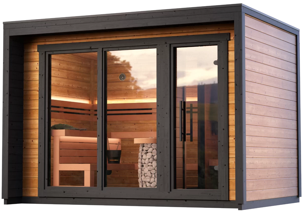 Crafted from thermally modified spruce, the Patio M outdoor prefab sauna kit is highly durable and weather-resistant. It comes with a choice of either a wood-burning or electric stove, a ventilation system, and comfortable benches made from Alder wood. Alder is a hardwood known for its exceptional strength and resistance to decay, ensuring that the benches can withstand the elements and the wear and tear of regular use.